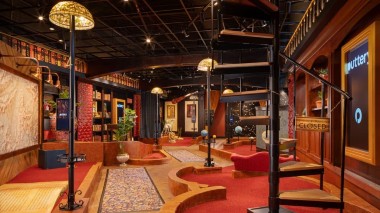 playing miniature golf. This 23,000-square-foot venue features a lively atmosphere, uniquely themed putting courses,